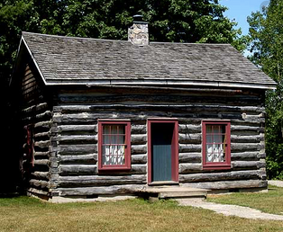 Because pioneer life was rugged and demanding, log cabins became associated with modesty, simplicity and hardship. Pioneer log cabins began as small squares, usually with one room, one door, and no windows. Corn cobs, stones and clay were pushed through the gaps between the logs to keep out the cold. Because they could be built quickly, they often served as a temporary shelter until a larger, more comfortable home could be constructed.